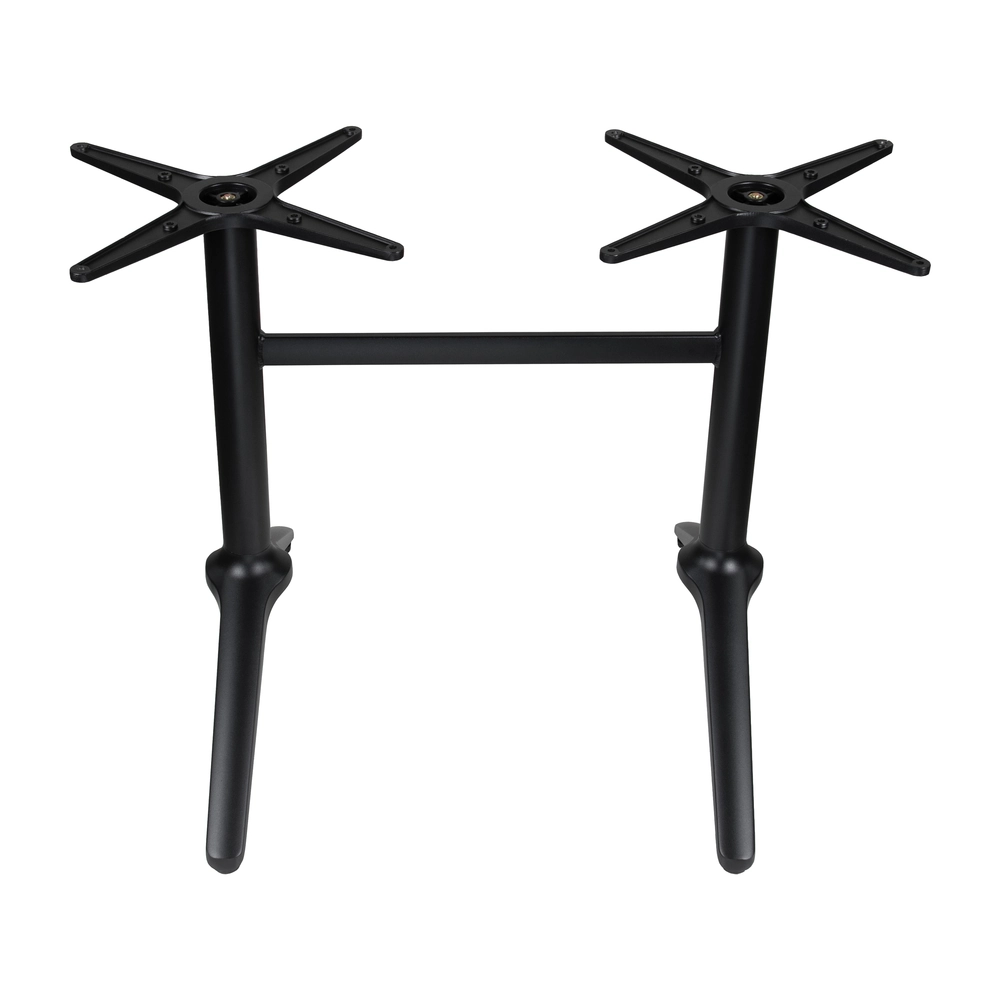 La Base de Mesa de Aluminio BR31 para Restaurante y Cafetería es de doble pedestal, tiene un original diseño de doble pata alzada y es apta para mesas rectangulares hasta de 120 cms.